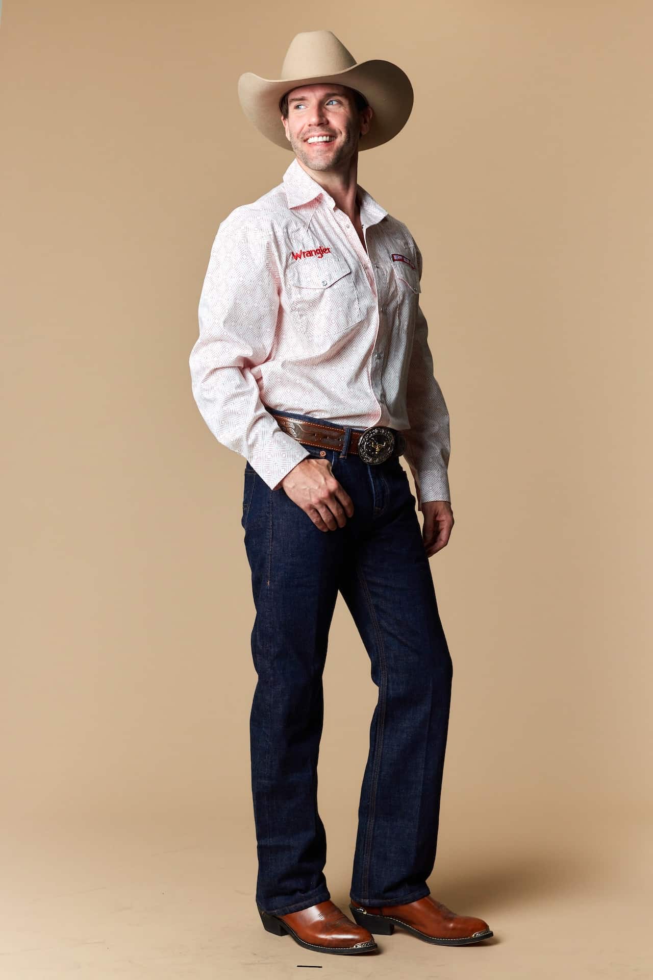 Deze jeans is gemaakt voor mannen die houden van comfort, stijl en het echte cowboygevoel. Met zijn stevige stretch, strakke pasvorm rond de heup en klassieke flare onderaan is dit dΓ© jeans voor ranch, rodeo of dagelijks gebruik.