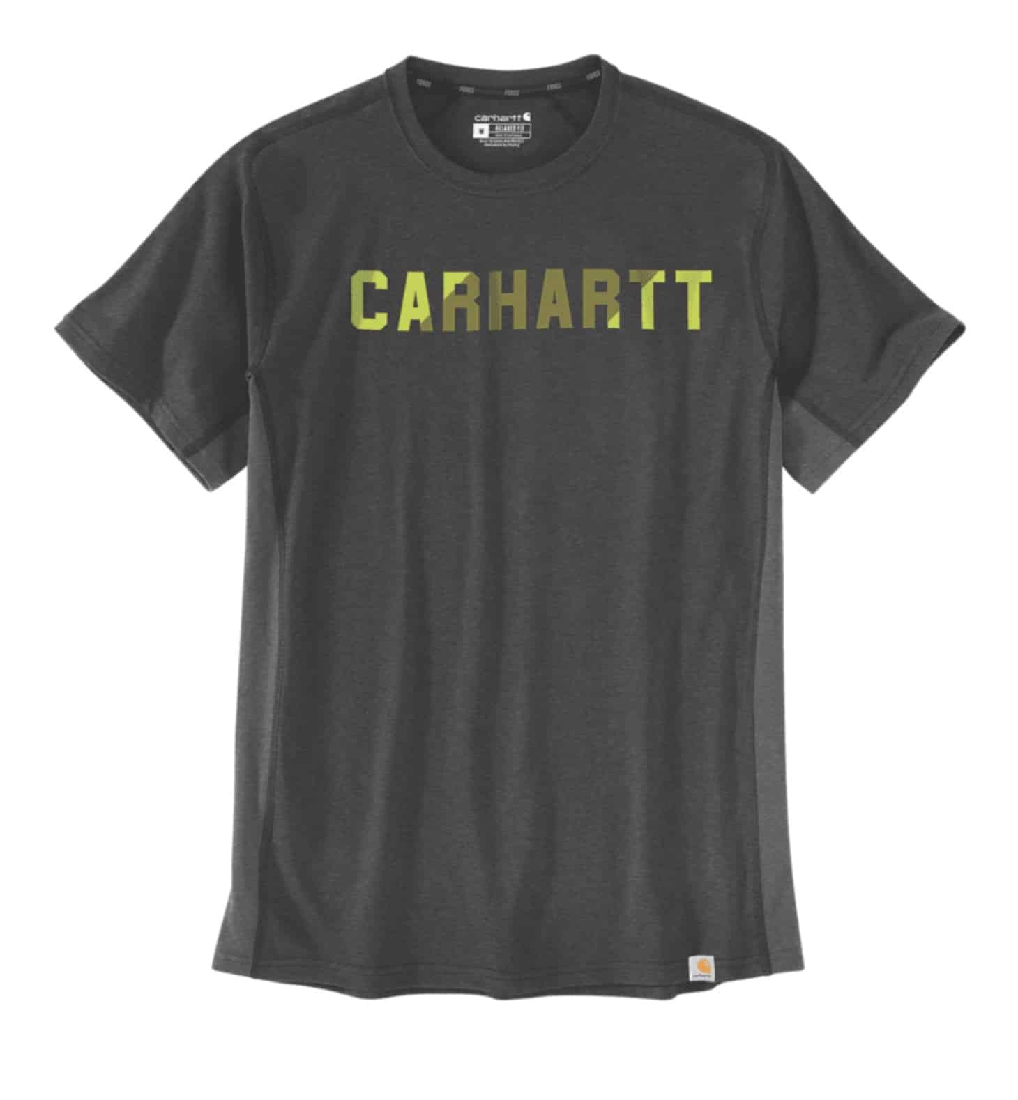 - RELAXED FIT · 5.75 oz/yd² – 195 gsm · 65% Katoen/35% Polyester · Flex jersey met zijpanelen van mesh · Carhartt Forceâ„¢ – FastDryâ„¢ met antimicrobiële eigenschappen · Stain Breakerâ„¢ – Laat vlekken los · FastDryâ„¢ – Voert vocht af voor comfort en bestrijdt geur met antibacteriële afwerking · Korte Raglanmouw · Ribgebreide ronde hals · Langere zoom achterkant · Gladde flatlock naden · Carhartt-print op de borst · Carhartt Forceâ„¢-label op mouw · Carhartt-label op zoom