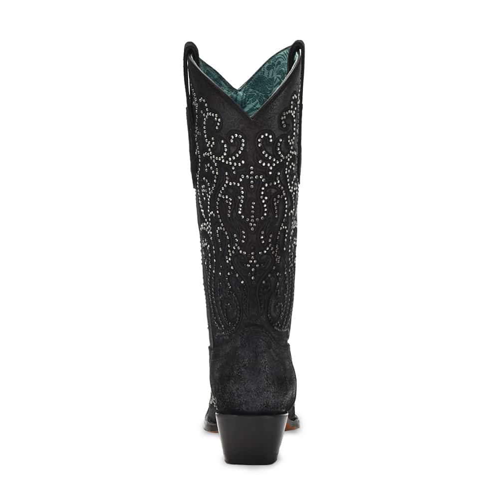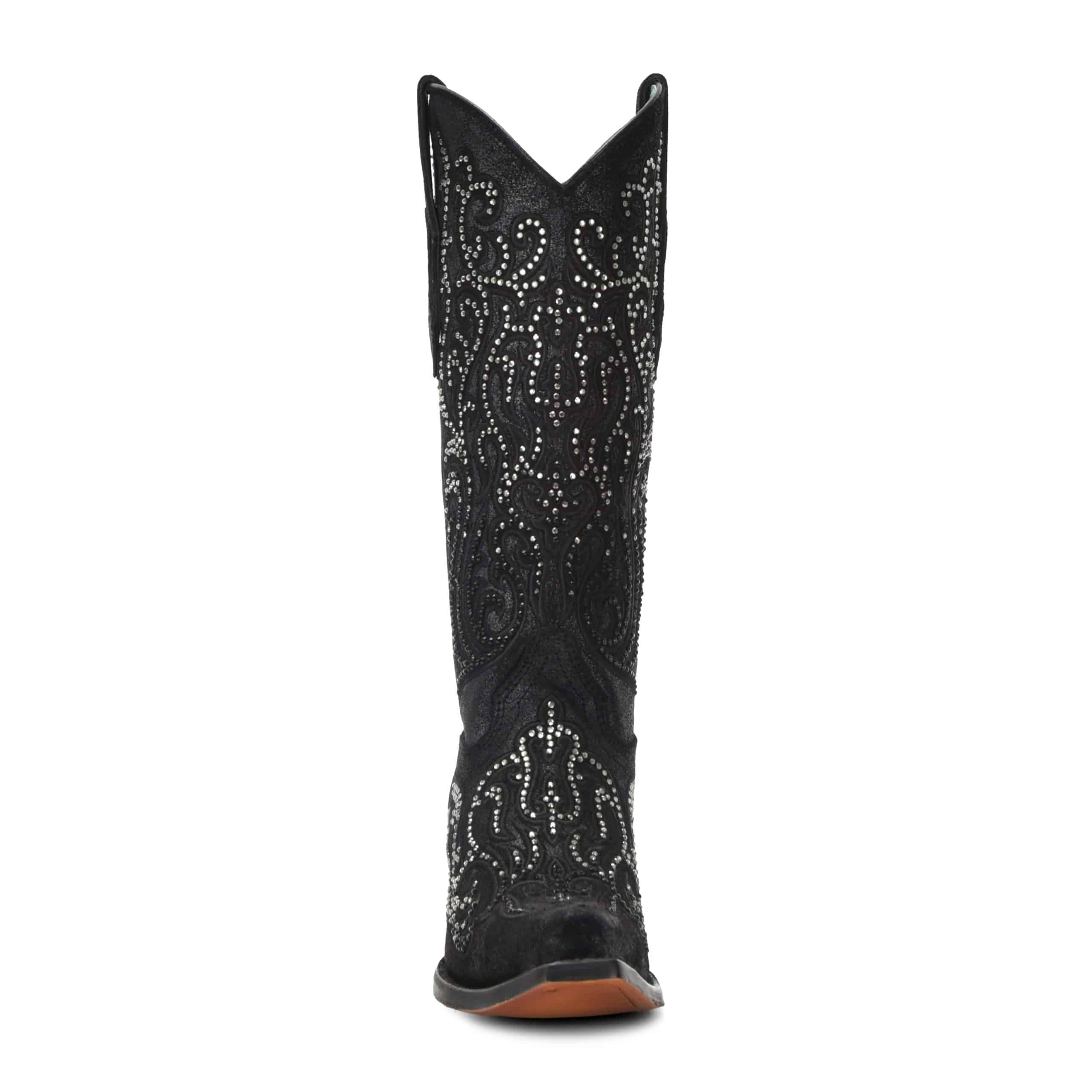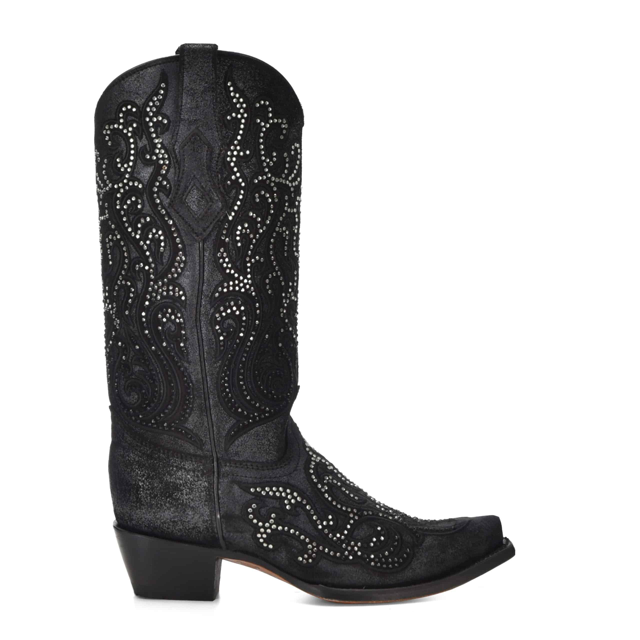 Deze luxe dameslaars in diepzwart is een echte blikvanger. De prachtige scroll embroidery gecombineerd met glinsterende studs geeft dit model een elegante, stijlvolle én stoere uitstraling. Perfect voor wie houdt van Western met een vleugje glamour.