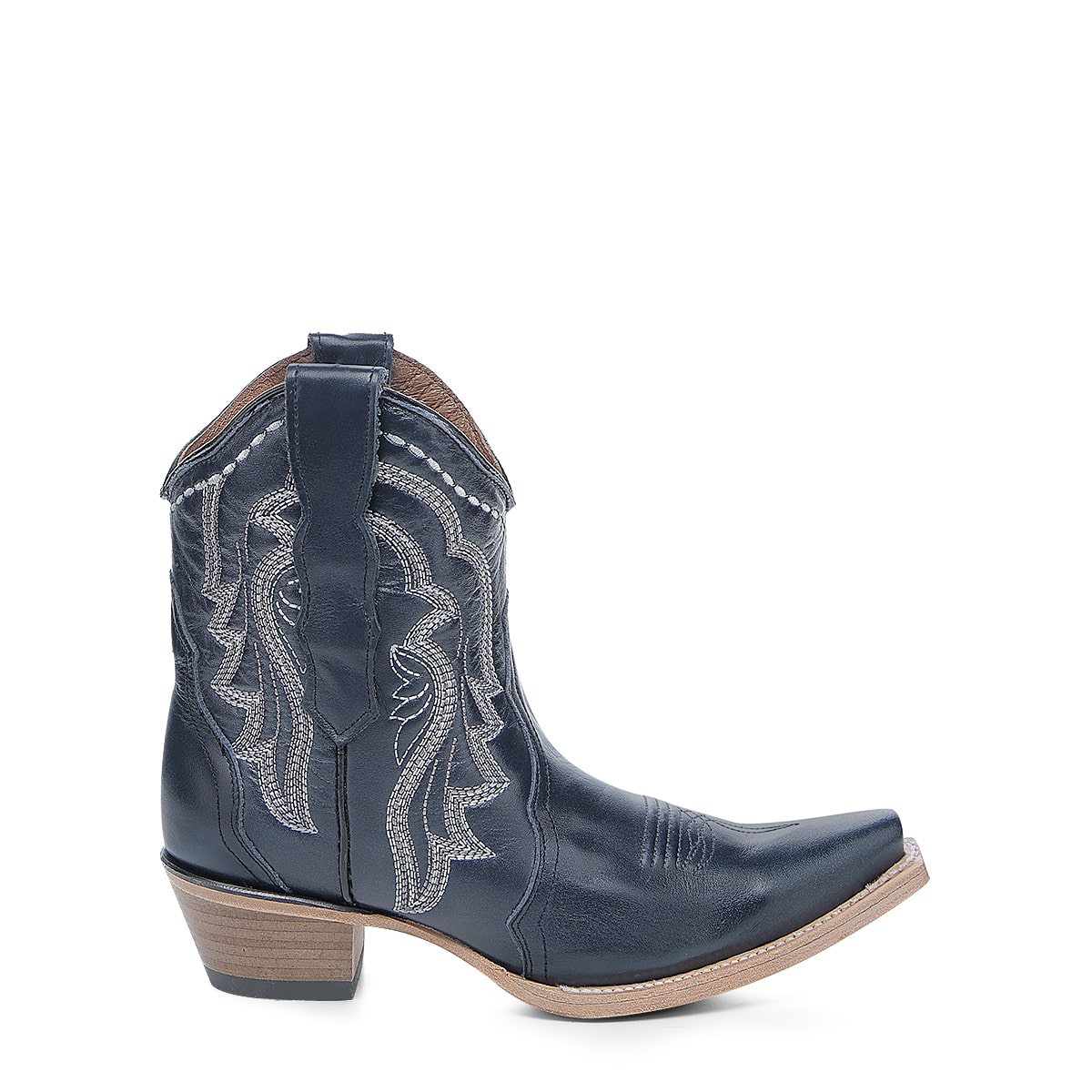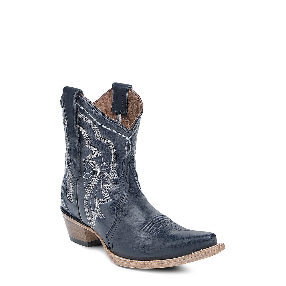 Zorg voor een stijlstatement met de Corral L6242 – een opvallende enkellaars in diep marineblauw leer, perfect voor de moderne cowgirl met lef. Deze laars combineert klassieke western-elementen zoals sierlijke stiksels en een elegante snip toe neus met een moderne kleur die direct in het oog springt.