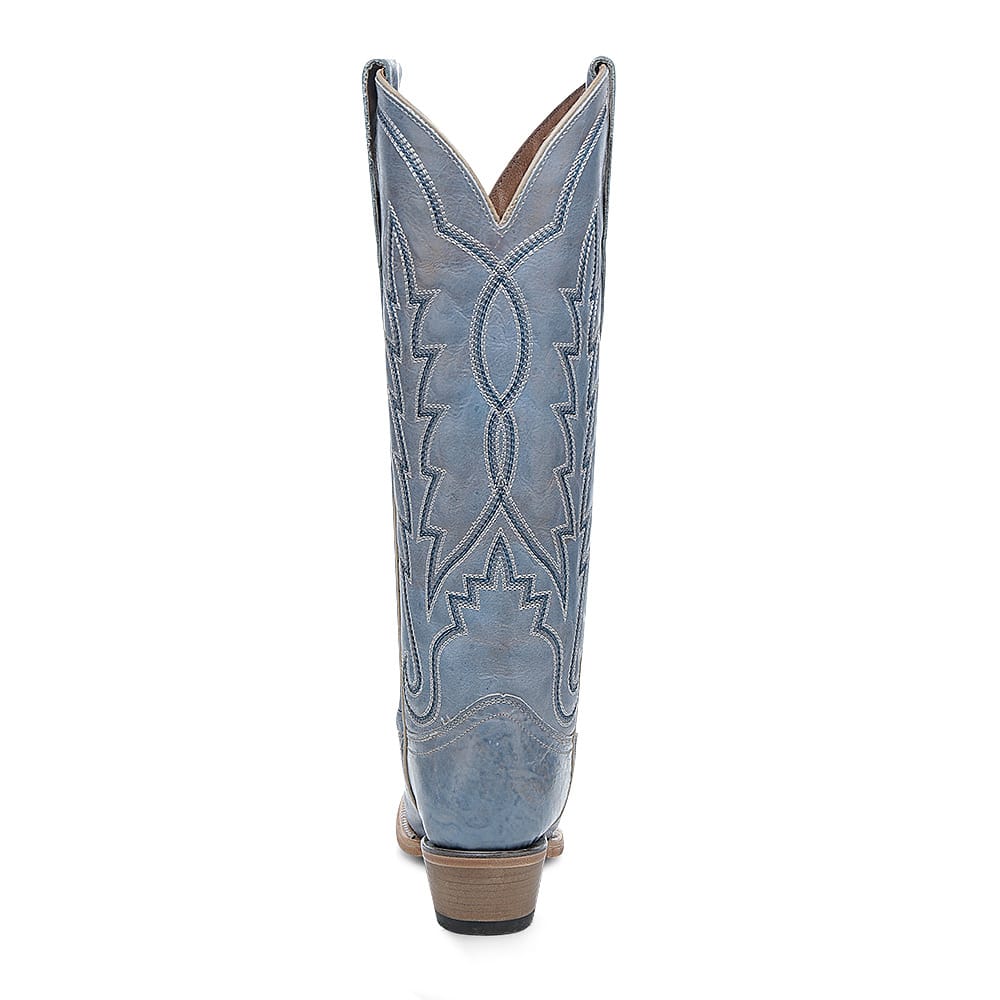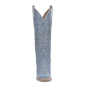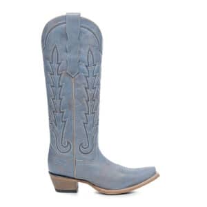 Breng een frisse, elegante twist aan je westernstijl met de Corral L6280 dameslaars. Deze prachtige laars is uitgevoerd in zachtblauw leer met subtiele verouderde finish, wat zorgt voor een vintage look met moderne flair. De klassieke westernstiksels in ton-sur-ton witblauw geven de laars een verfijnd detail dat zowel opvalt als moeiteloos te combineren is.