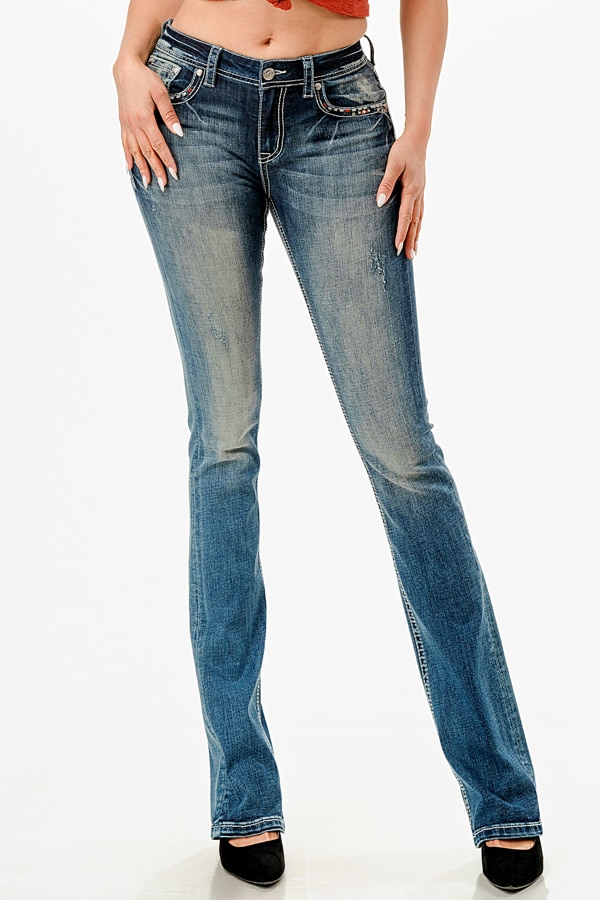 Een echte eye-catcher voor dames die houden van stijl én Western flair! Deze jeans combineert een comfortabele pasvorm met prachtige details op de zakken. Perfect te dragen met je favoriete boots of een stoere blouse.