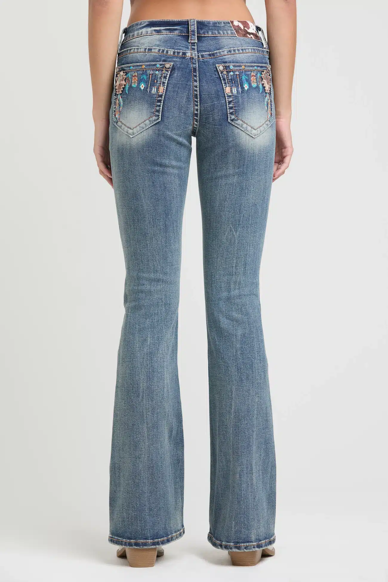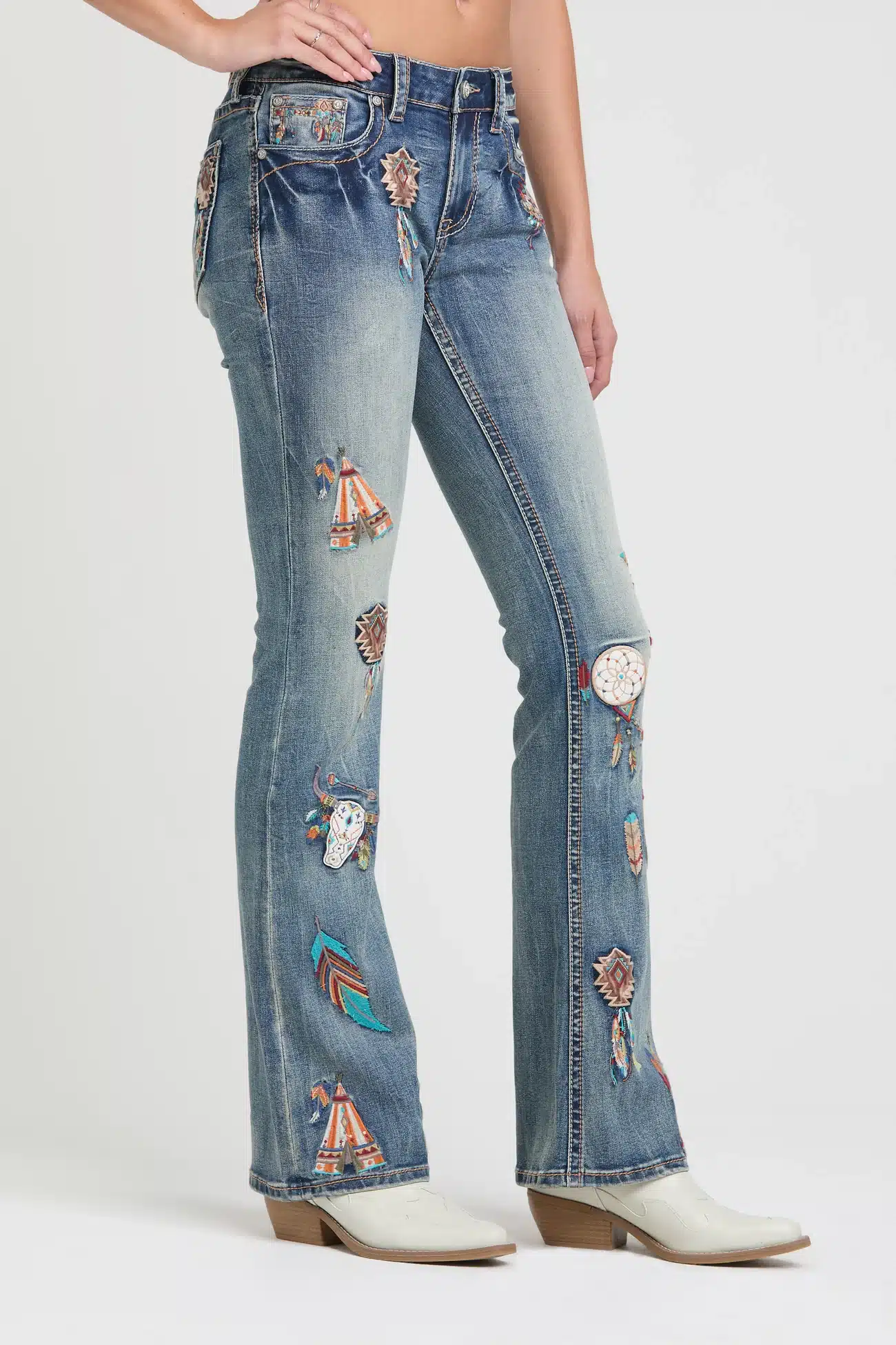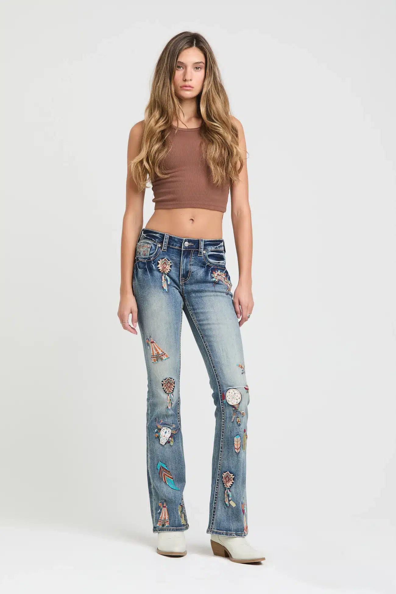 Deze unieke Western jeans met kleurrijke borduursels, dreamcatchers, veren en stoere details is een echte blikvanger πŸ€ πŸ‘– Perfect te combineren met jouw favoriete boots voor een authentieke Western look!