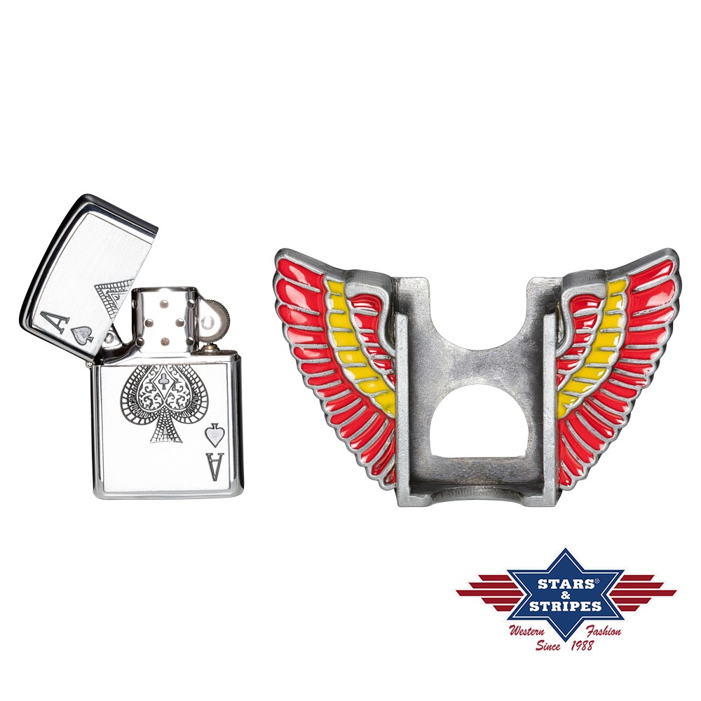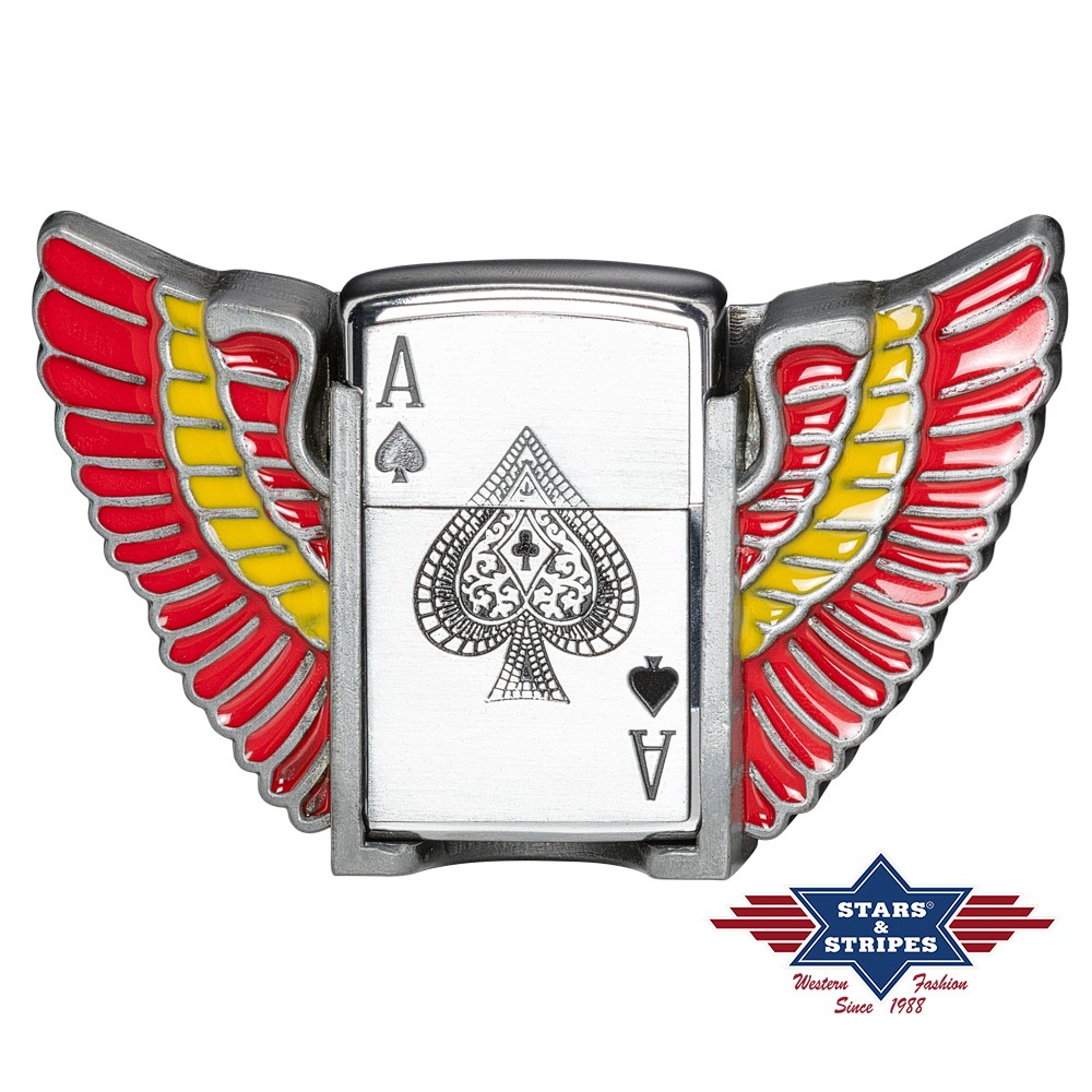 Western-riemgesp met pokerkaartontwerp en uitneembare stalen stormaansteker.