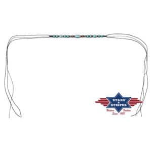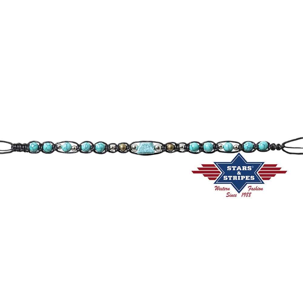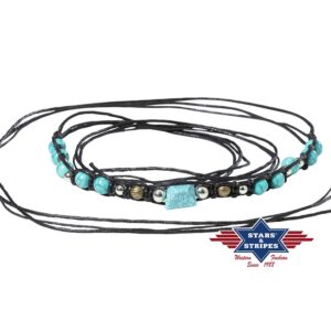 Gevlochten hoedenband met kraaltjes en turquoise steentjes