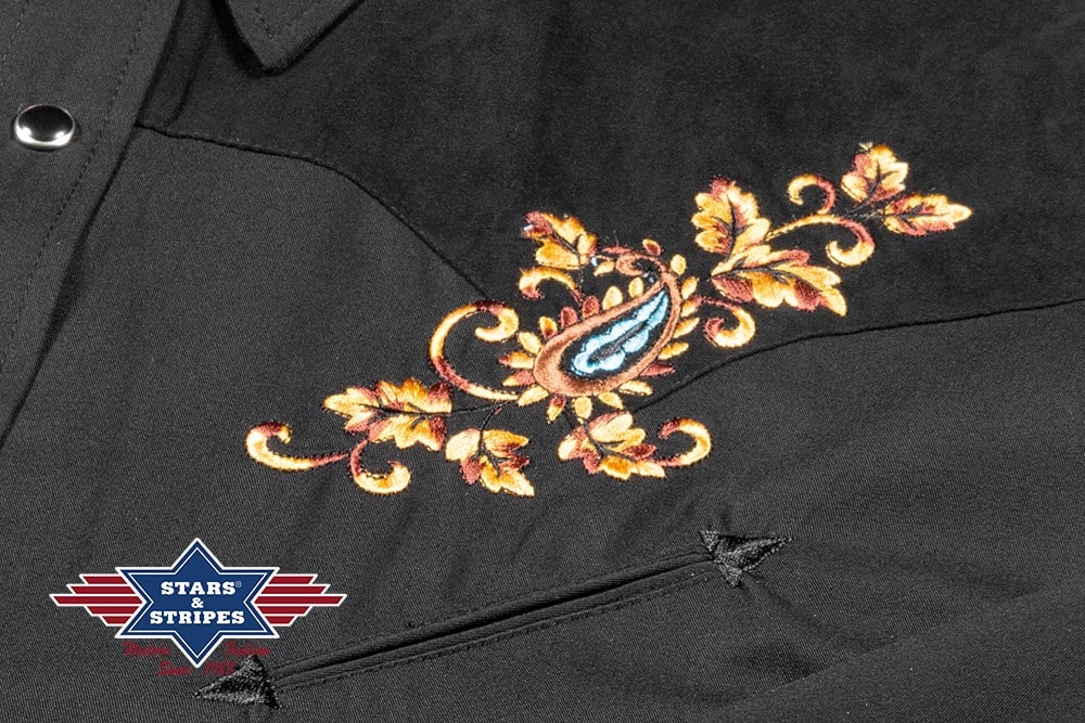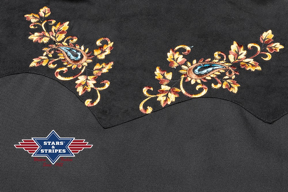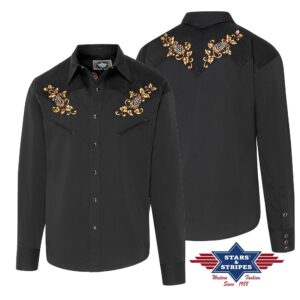 Westernoverhemd met geborduurde westernpas en smileyzakken. Mooie drukknopen maken het ontwerp compleet. Past bij blouse Cara