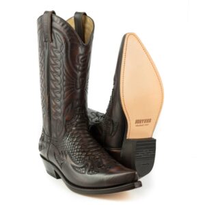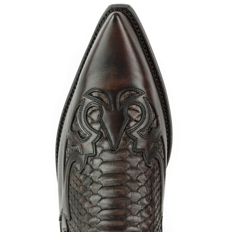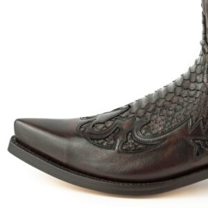 Een exclusieve laars van Natural Python leer en topkwaliteit rundleer met een gedragen afwerking die hem nog authentieker maakt.