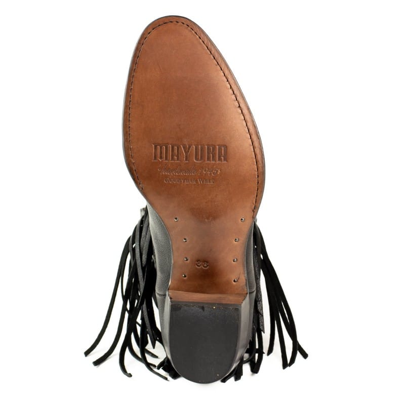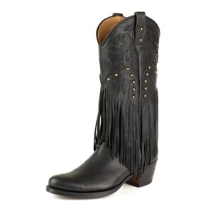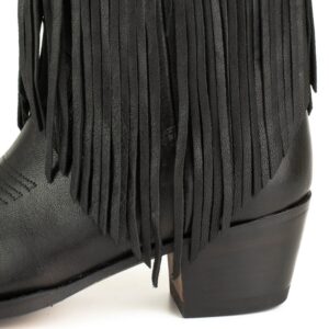 Een zeer zachte leren laars, voor uitstekend comfort, en ontworpen voor een casual stijl die niet uit de mode raakt. Deze prachtige dameslaarzen hebben een stijlvolle en comfortabele ronde neus voor een klassieke westernstijl. Deze laarzen met franjes zijn gemaakt van echt leer, lange franjes aan de zijkant van de laars en verouderde gouden klinknagels op de schacht. Leren zool, handgemaakt met het GOODYEAR Welt-systeem, dat de duurzaamheid van de laars en een uitstekend comfort garandeert.