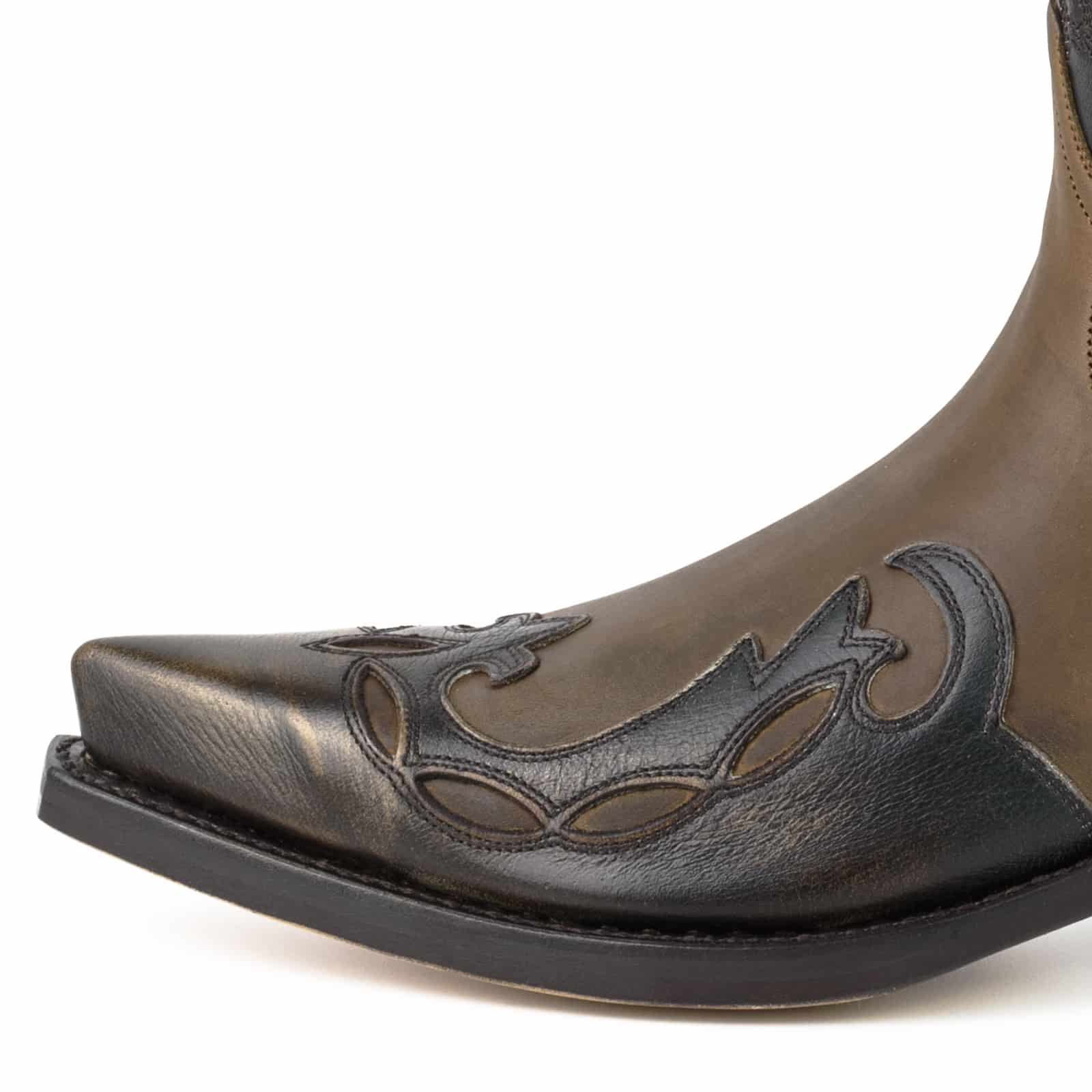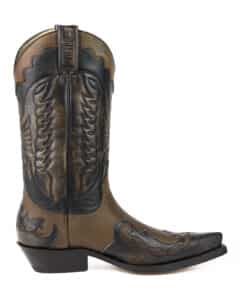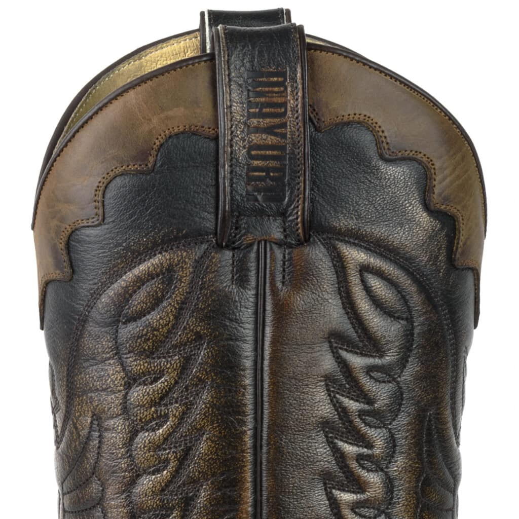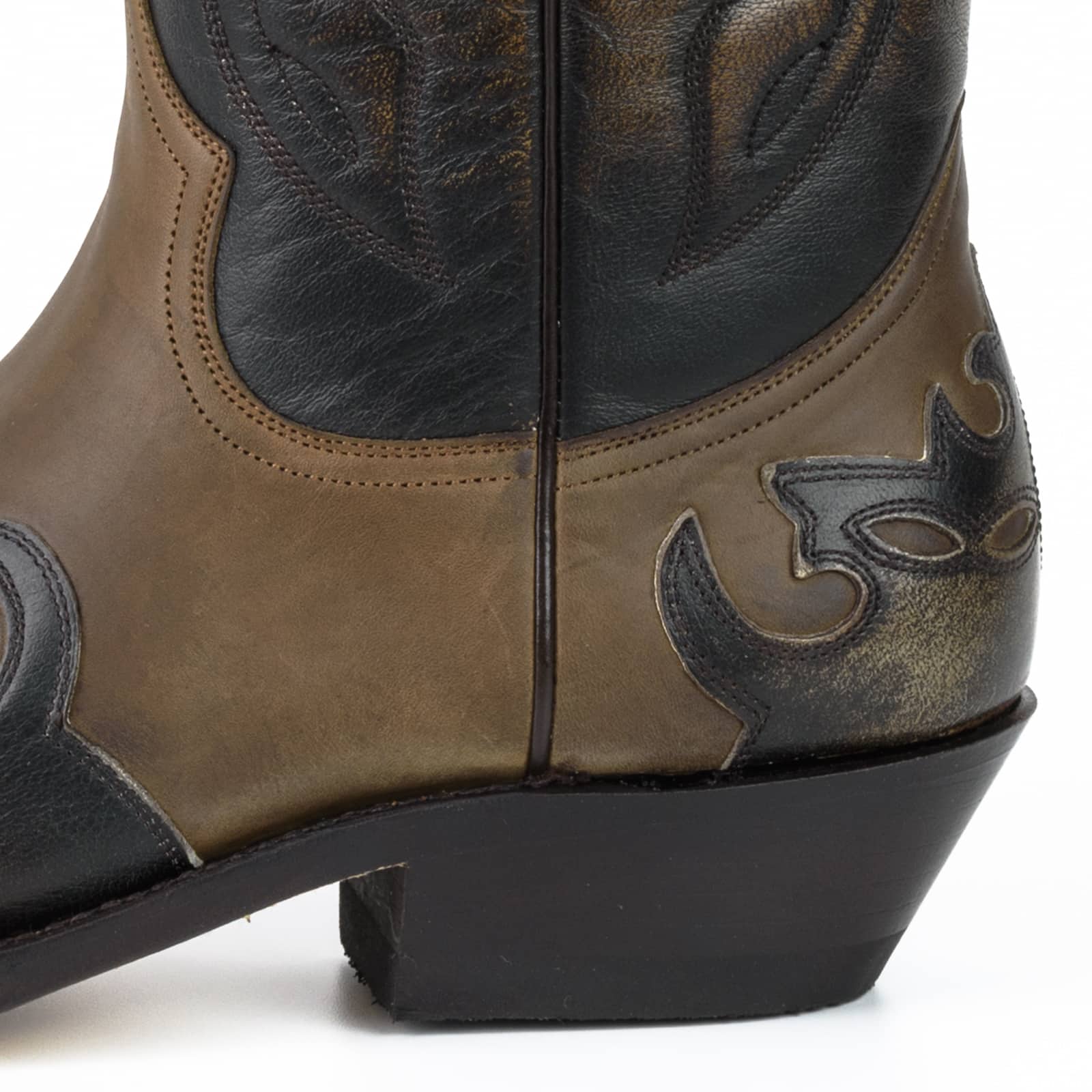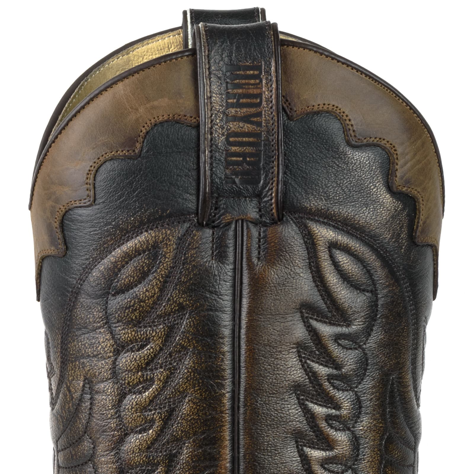 Cowboylaars van runderleer, in een bruine tint met een gedragen look gecombineerd met bruin crazy leer.