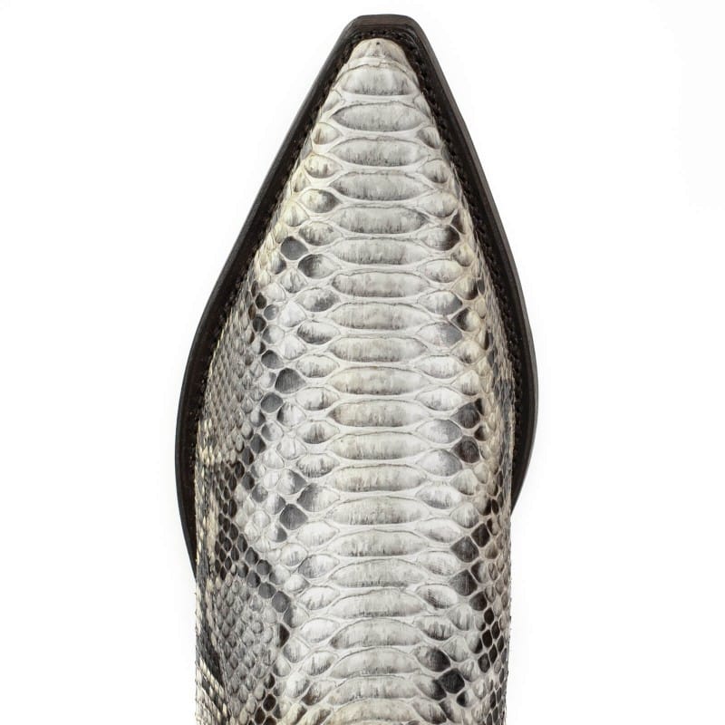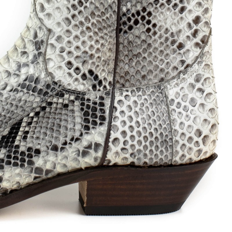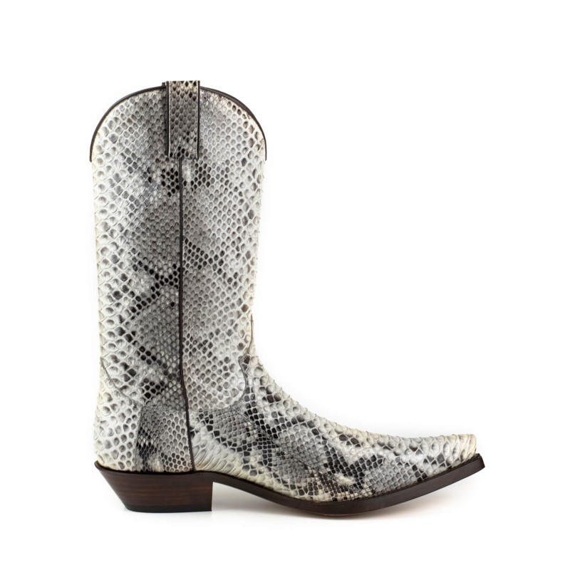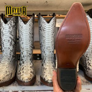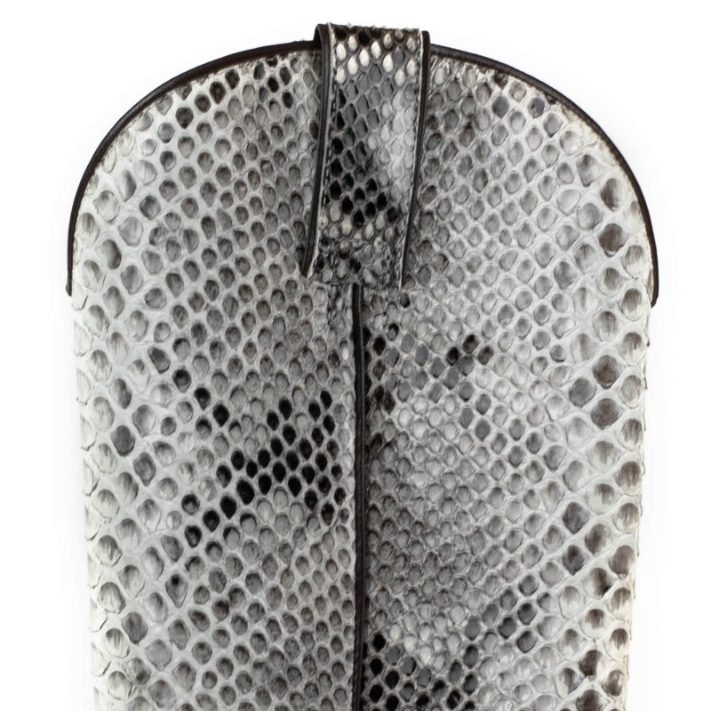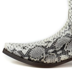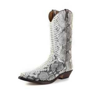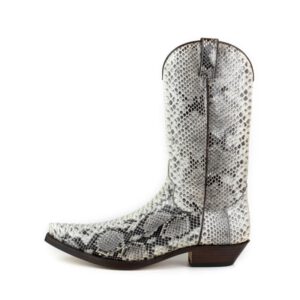 Cowboylaars gemaakt van echt pythonleer. Met zijn witte kleur en glanzende afwerking zal het geen laars zijn die onopgemerkt blijft. Met dubbele zool, Spaans kalfsleer en handgemaakt met het gerenommeerde GOODYEAR Welt systeem, wat de duurzaamheid van de laars en een uitstekend comfort garandeert.