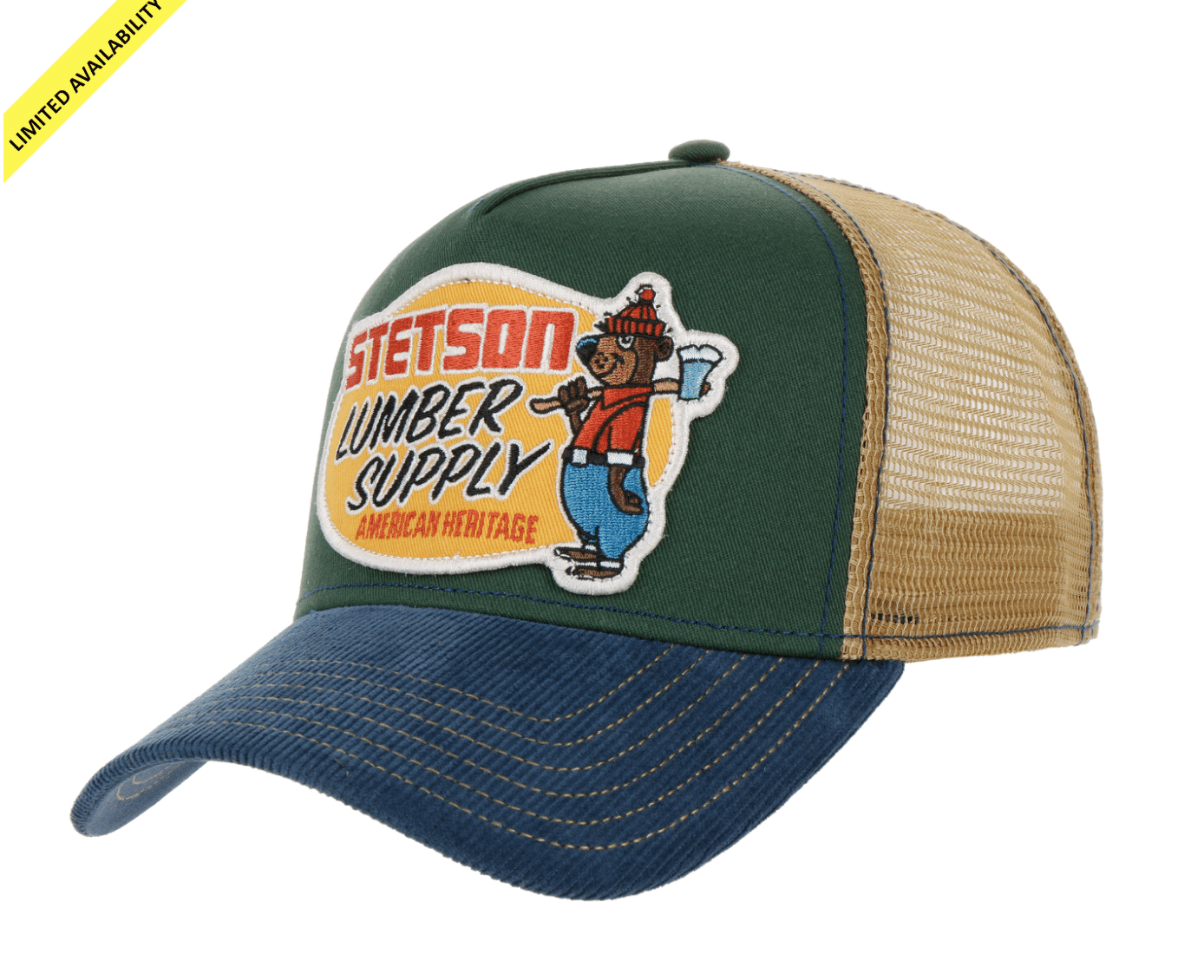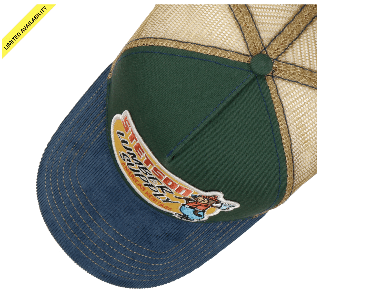 Met zijn naar boven gedraaide voorkant en gebogen vizier is deze truckerpet een klassieke stijl. De pet dankt zijn naam aan zijn decennia oude Amerikaanse oorsprong als de favoriete hoofddeksels van vrachtwagenchauffeurs en monteurs. Het ontwerp bestaat uit zes panelen zonder middennaad.