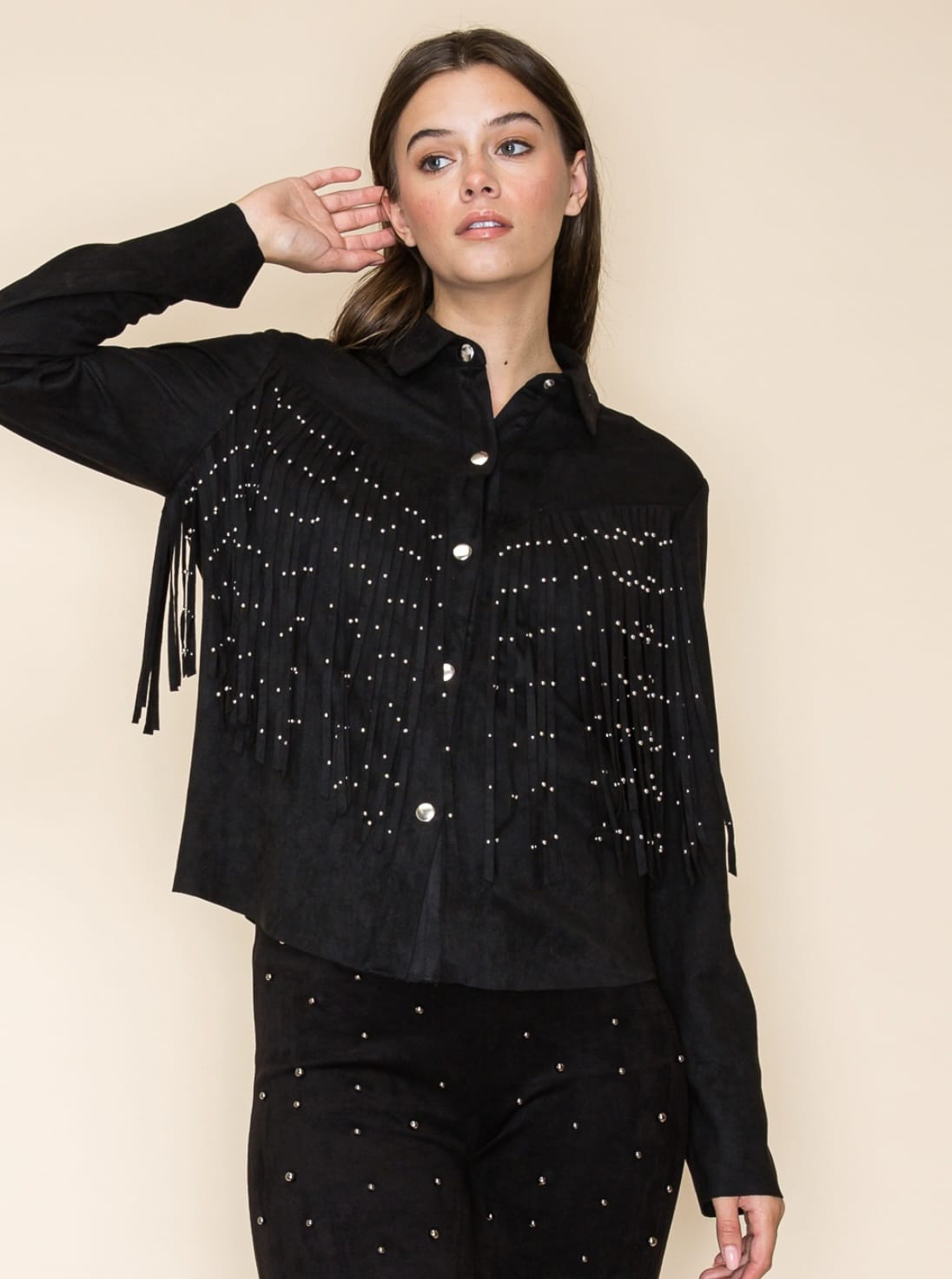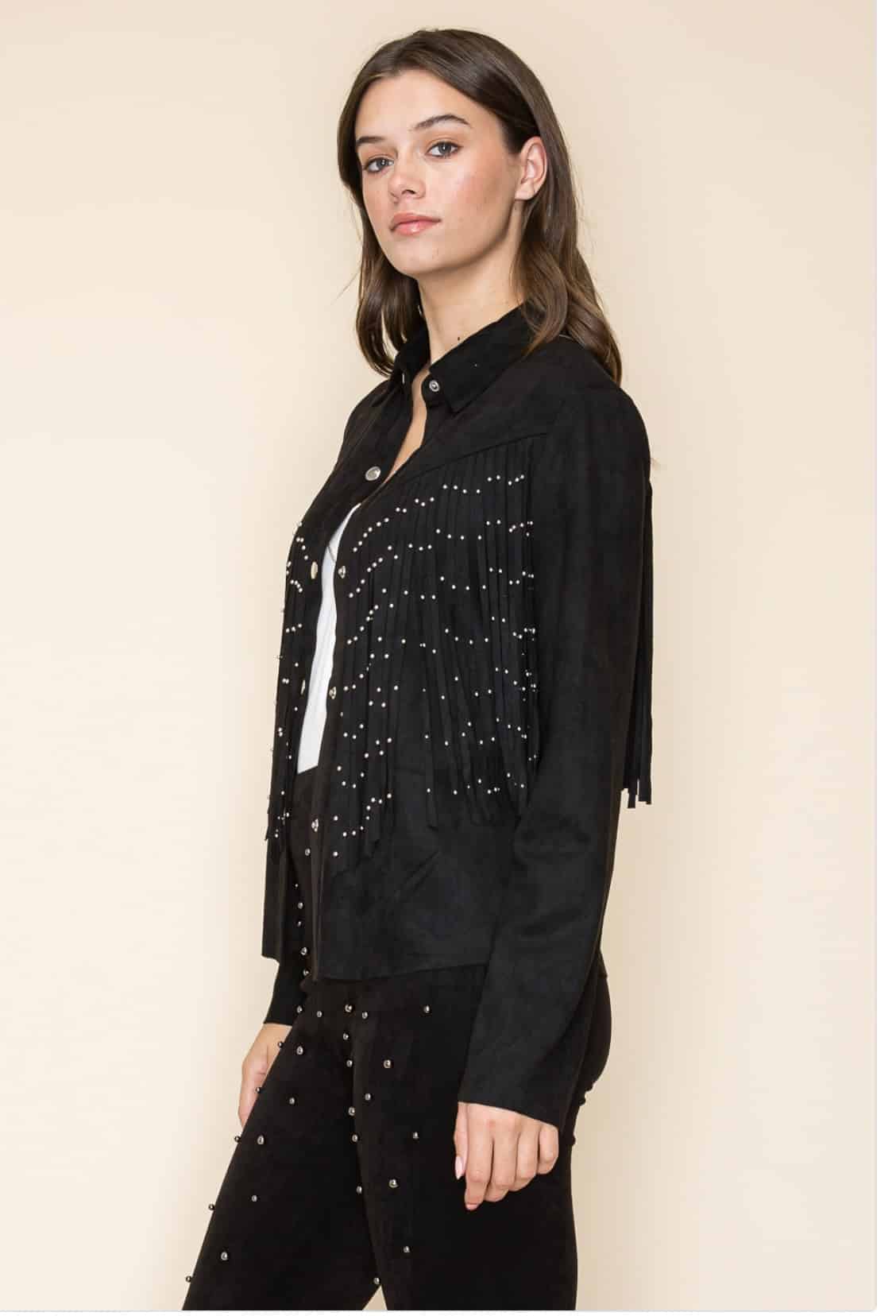 Studed Fringe black jacket K3307J
