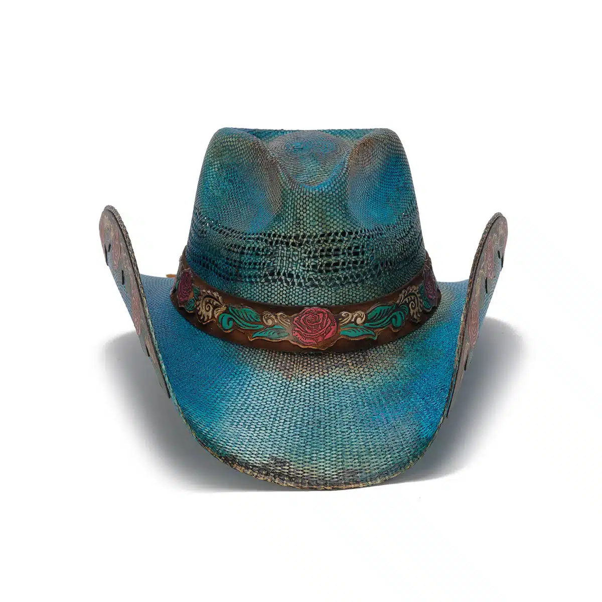 Maak kennis met de TENNESSEE uit de Stampede-collectie, met echt Bangora-stro en een band van echt leer met roze borduurwerk. De geventileerde kroon en 4-inch rand hebben een geborduurde details met rozenontwerp voor een klassieke look. De TENNESSEE is gemaakt van hoogwaardige materialen en is perfect voor al uw buitenavonturen.
