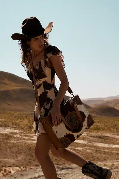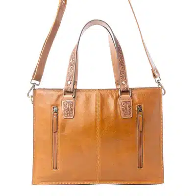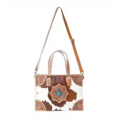 Desert jewel Handtooled Hairon Leather Concealed Carry bag in Timber Brown